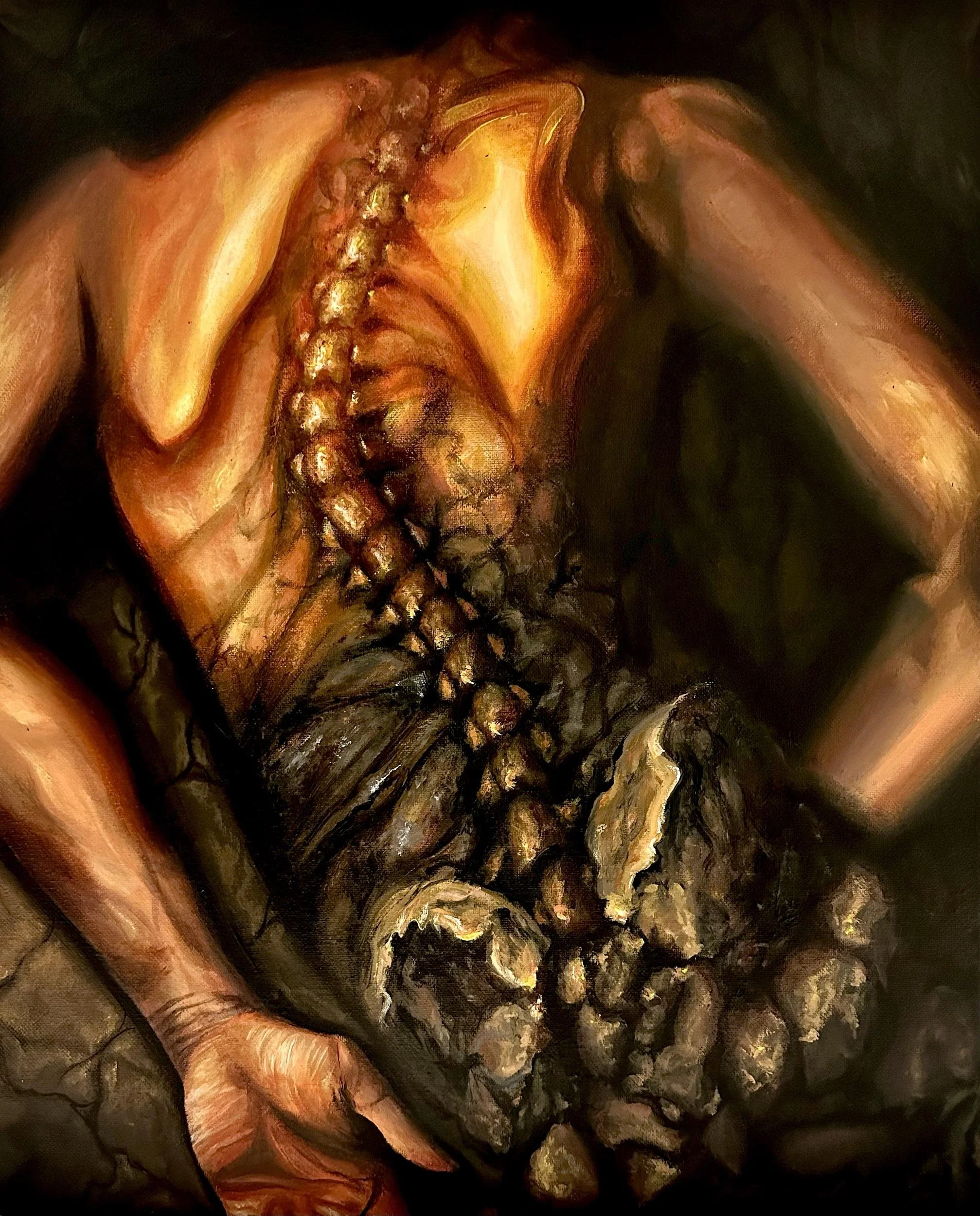 Lumbar’s Lithification, 16” x 20”, Acrylics on canvas, 2025