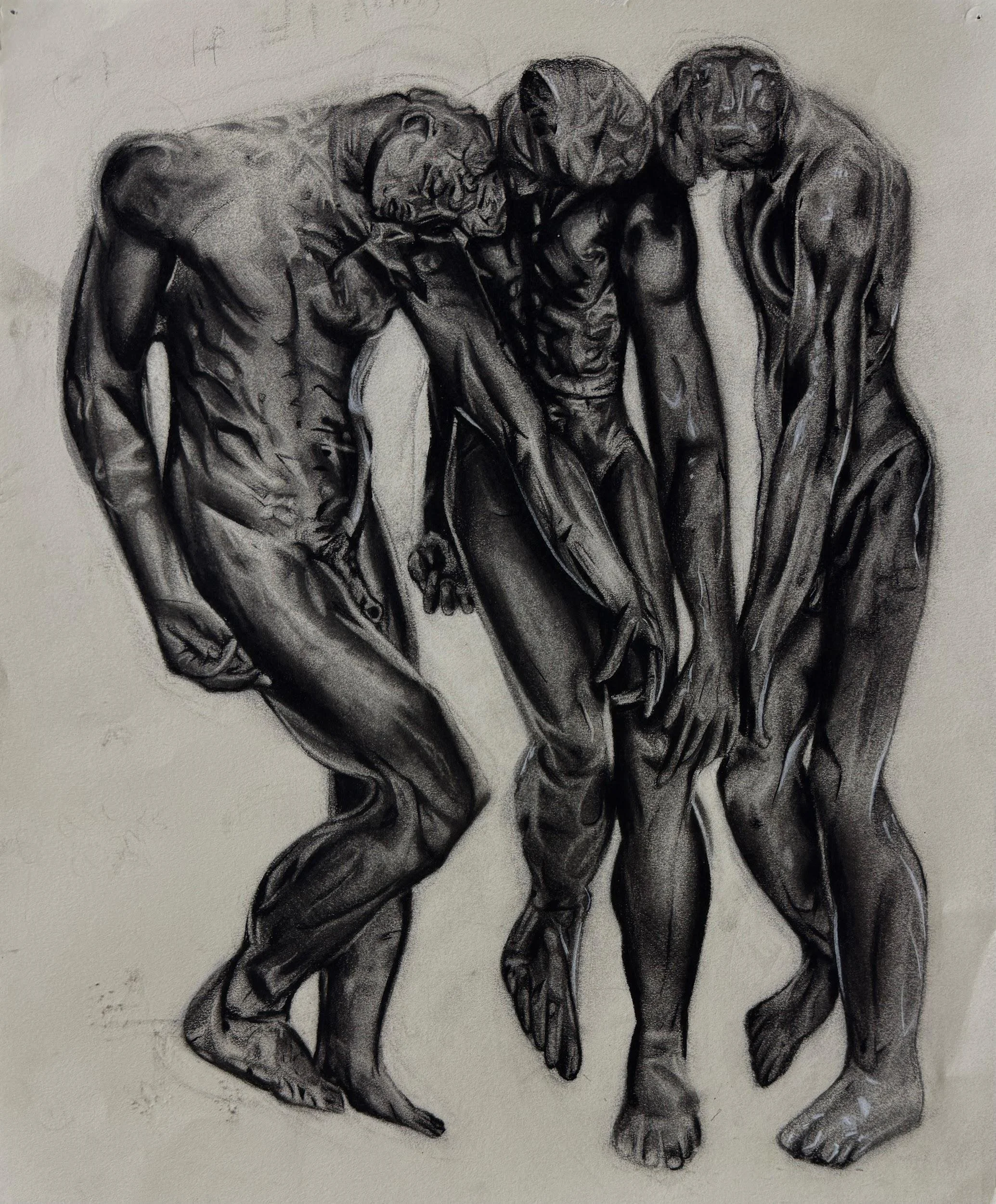 Anatomy Study of “The Three Shades”, 14” x 17”, Charcoal on paper, 2025