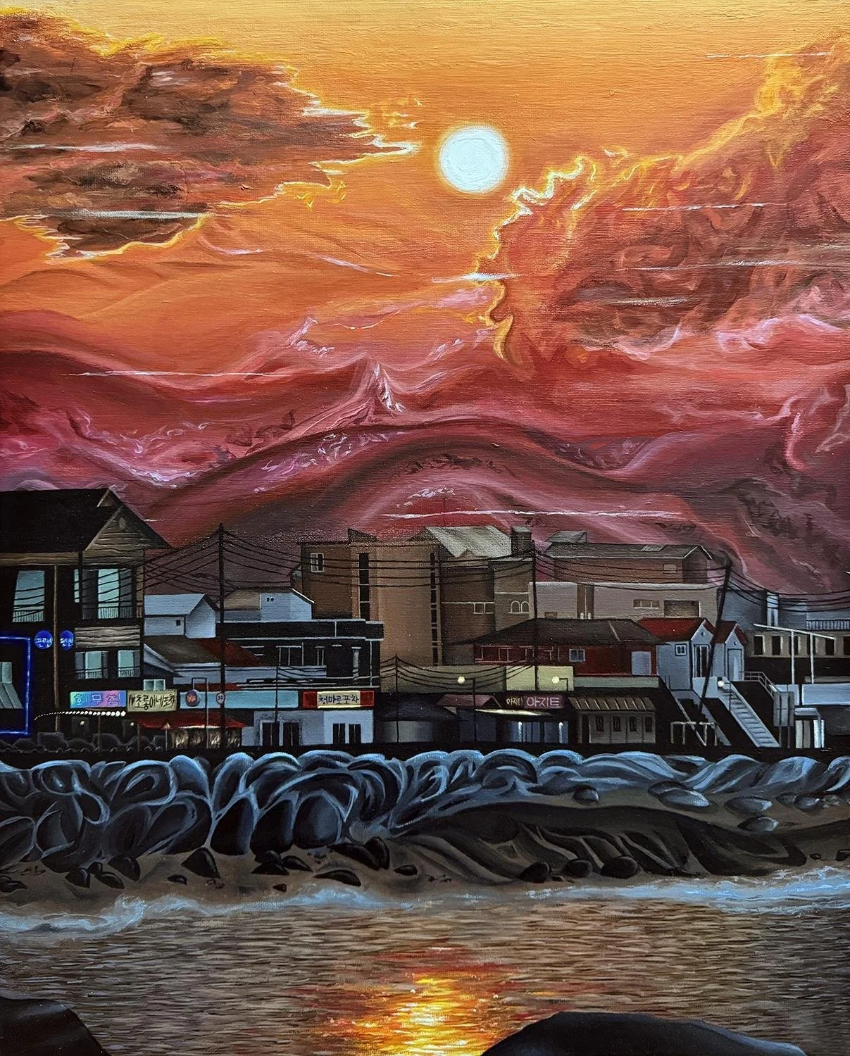 Sokcho, South Korea, 16” x 20”, Acrylics on canvas, 2024