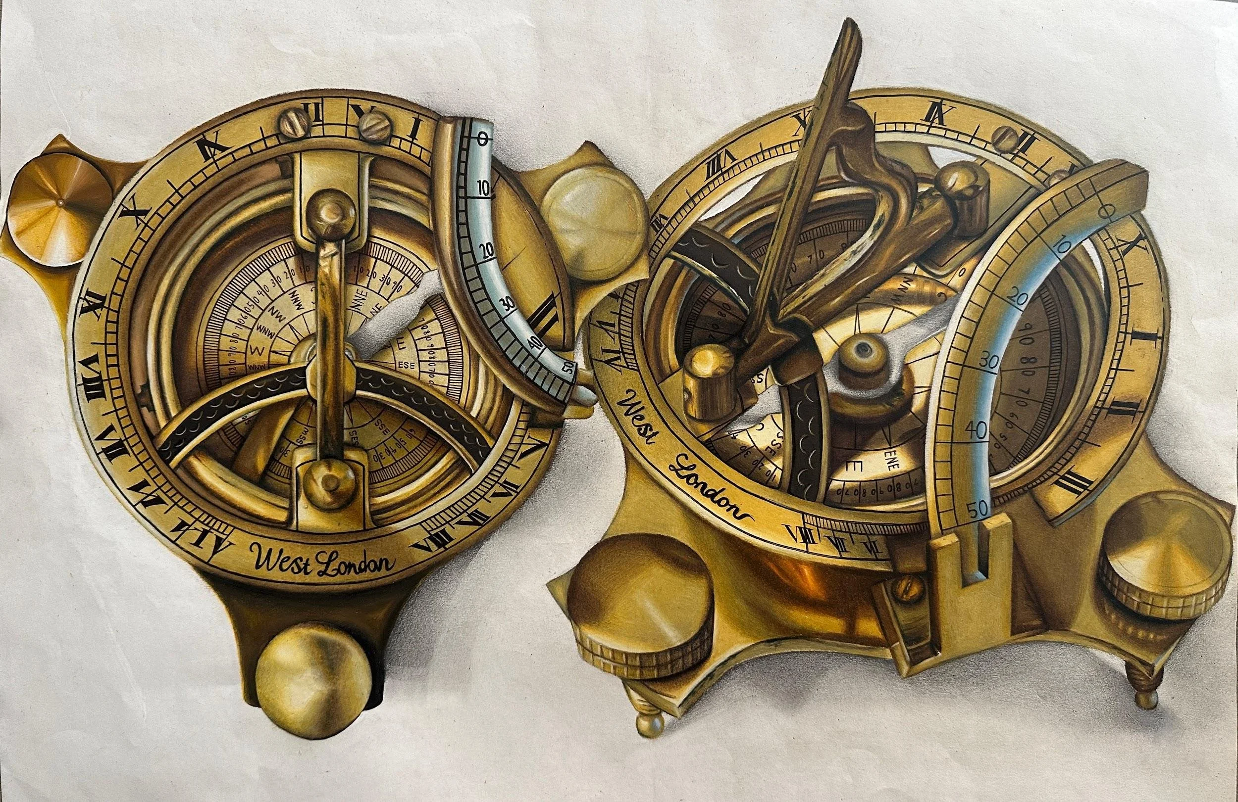 Sundial, 24” x 18”, Colored pencils on paper, 2024